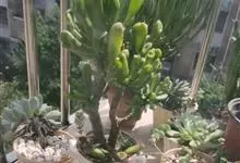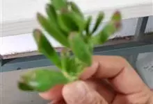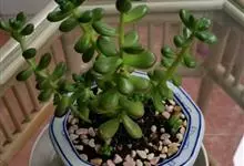 筒叶花月,是景天科青锁龙属的多年生草本植物。植株多分株,灌木状,茎较粗壮,圆柱形,表皮灰褐色;叶片肉质,互生,呈圆筒状,簇生于茎或分枝顶端,叶端呈斜截形,截面为椭圆形;花呈星状,淡白色;花期秋季。…全部>>
