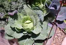 甘蓝,十字花科芸薹属二年生草本植物,茎肉质,矮而粗壮,不分枝;叶片多,质厚,层层包成球状体,为乳白或淡绿色;花瓣淡黄色,为宽长倒卵形或近圆形;果实为圆柱形,两侧稍扁,果柄直立开展。花期4月,果期5月。…全部>>