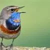 蓝点颏亦称“蓝喉歌鸲”,通称蓝靛颏儿。身体大小和麻雀相似,体长12-13厘米,体重17-18克。头部、上体主要为土褐色。眉纹白色。尾羽黑褐色,基部栗红色。颏部、喉部辉蓝色,下面有黑色横纹。下体白色。…全部>>