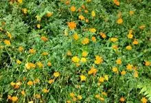 万寿菊是菊科万寿菊属一年生草本植物,别名孔雀菊、缎子花、臭菊花、西番菊、红黄草、小万寿菊、臭芙蓉、孔雀草。万寿菊茎近基部分枝。叶羽状分裂,长5-10厘米,宽4-8厘米,裂片长椭圆形或披针形,具锐齿,…全部>>