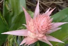美叶光萼荷是凤梨科光萼荷属的多年生附生常绿草本植物。叶基生,莲座状叶丛基部围成筒状,叶呈绿色条形至剑形,被灰色鳞片;花葶直立,花序穗状,密集成阔圆锥状球形花头,苞片呈淡玫瑰红色革质,先端尖,小花无柄,…全部>>
