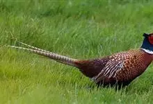 环颈雉是雉科、雉属的一种走禽,共有30个亚种。体重900-1050克,体长53-89厘米。体型较家鸡略小,但尾巴却长得多。雄鸟和雌鸟羽色不同,雄鸟羽色华丽,多具金属反光,…全部>>