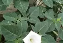 曼陀罗,茄科曼陀罗属一年生大型草本植物,全株光滑。有臭气;叶呈广卯形,边缘具不规则波状浅齿裂;花单生于枝杖间或叶腋,直立,有短梗;花萼是筒状裂片三角形,颜色为白色或淡紫色;果实为蒴果卵状,…全部>>