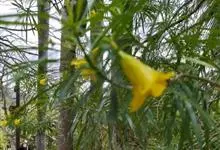 黄花夹竹桃K. Schum.),又名“酒杯花”“柳木子”“黄花状元竹”,是夹竹桃科,黄花夹竹桃属下的常绿乔木植物。高达5m,全株无毛,树皮棕褐色;叶互生,近革质,线形或线状披针形;花大,黄色,具香味,…全部>>