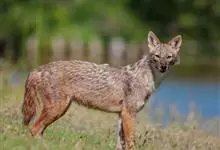 亚洲胡狼是金豺的指名亚种,体型中等、匀称,四肢修长,趾行性,利于快速奔跑。头腭尖形,颜面部长,鼻端突出,耳尖且直立,嗅觉灵敏,听觉发达。犬齿及裂齿发达;上臼齿具明显齿尖,…全部>>