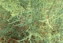 盐地碱蓬 Pall.)是苋科碱蓬属植物。一年生草本,高20-80厘米,绿色或紫红色。茎直立,圆柱状,黄褐色,有微条棱,无毛;分枝多集中于茎的上部,细瘦,开散或斜升。叶条形,半圆柱状。…全部>>