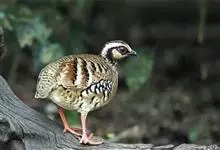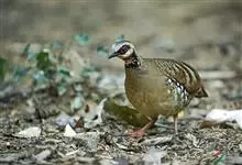 褐胸山鹧鸪:雄鸟体长22厘米,体重310克;雌鸟体长23厘米,体重220-275克。前额皮黄白色,头顶橄榄褐色。眼部的裸皮鲜红色,有一条宽阔的皮黄白色眉纹一直延伸到颈的侧部。上体亮橄榄褐色,具黑色横斑。…全部>>