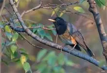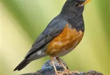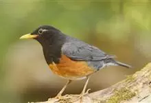 黑胸鸫属中型鸟类,体长20-30厘米。雄鸟整个头、颈、胸黑色,其余上体暗灰色,下体橙棕色,极为醒目。嘴、脚蜡黄色。雌鸟上体橄榄褐色,颏、喉白色,上胸橄榄褐色具黑色斑点,其余与雄鸟相似。…全部>>