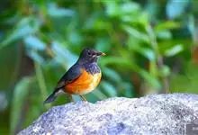 栗腹矶鸫是鸫科、矶鸫属小型鸟类,体长20-25厘米。雄鸟上体呈辉亮的钴蓝色,两翅黑褐色,喉蓝黑色,其余下体栗红色。雌鸟上体橄榄褐色,背具黑色鳞状斑,下体棕白色密杂以黑褐色横斑,黑白相衬,极为醒目,…全部>>