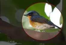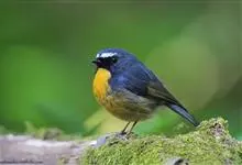 棕胸蓝姬鹟:属小型鸣禽,体长10-13厘米,体重6-10克,是一种体型很小的灰蓝及棕色鹟,雌雄羽色不同,雄鸟羽色艳丽,雌鸟羽色暗淡。雄鸟上体深蓝色,胸橙黄色,下腹灰白色。亚成鸟具褐色斑驳。…全部>>