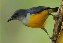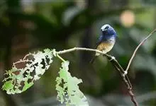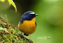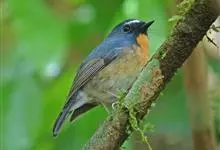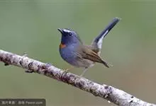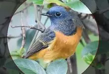 棕胸蓝姬鹟:属小型鸣禽,体长10-13厘米,体重6-10克,是一种体型很小的灰蓝及棕色鹟,雌雄羽色不同,雄鸟羽色艳丽,雌鸟羽色暗淡。雄鸟上体深蓝色,胸橙黄色,下腹灰白色。亚成鸟具褐色斑驳。…全部>>