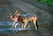 亚洲胡狼是金豺的指名亚种,体型中等、匀称,四肢修长,趾行性,利于快速奔跑。头腭尖形,颜面部长,鼻端突出,耳尖且直立,嗅觉灵敏,听觉发达。犬齿及裂齿发达;上臼齿具明显齿尖,…全部>>
