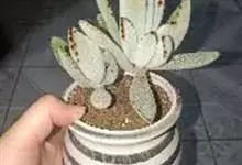褐斑伽蓝是景天科伽蓝菜属的多年生多肉类植物,茎直立,多分枝,叶生于枝上,肉质叶片匙形,上面密被白色绒毛,下部全缘,叶缘上部有缺刻,缺刻处有深褐或棕色斑块。褐斑伽蓝原产非洲的马达加斯加岛。…全部>>