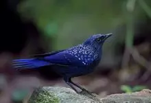 紫啸鸫是雀形目鹟科啸鸫属鸟类,又称黑雀儿,山鸣鸡、乌精。成鸟眼先及颏绒黑色;前额、头顶至背及肩羽和颈侧呈深紫蓝色,羽端具较密集的亮蓝色点斑;腰至尾上覆羽的深紫蓝色较暗而杂黑褐色,…全部>>