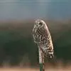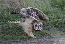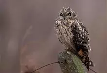短耳鸮又名小耳木兔、田猫王、夜猫子等,是鸮形目鸱鸮科耳鸮属中小型猛禽动物。成鸟面盘显著,眼周黑色;眼先及内侧眉纹灰白色,面盘余部棕黄色杂以黑色细羽干纹;耳簇羽短小而几乎不外露,…全部>>