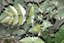阔叶十大功劳 Carr. )是小檗科,十大功劳属常绿灌木或小乔木,高可达2米。叶长圆形,上面深绿色,叶脉显著,背面淡黄绿色,网脉隆起,小叶无柄,基部一对小叶倒卵状长圆形,总状花序簇生,…全部>>