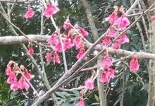山樱花是蔷薇科李属植物。乔木,高3-8米,树皮灰褐色或灰黑色。小枝灰白色或淡褐色,无毛。冬芽卵圆形,无毛。叶片卵状椭圆形或倒卵椭圆形,上面深绿色,无毛,下面淡绿色,无毛。花序伞房总状或近伞形,…全部>>