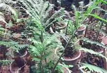 福建观音座莲,合囊蕨科观音座莲属的植物。植株高大,高1.5米以上;根茎块状,下面簇生有圆柱状的粗根;叶柄粗壮,干后褐色,狭长圆形,基部不变狭,对生或互生;孢子囊羣棕色,长圆形。…全部>>