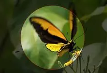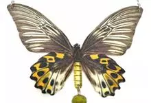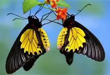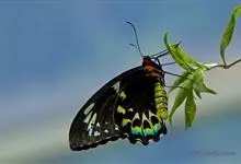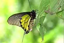 金裳凤蝶是凤蝶科、裳凤蝶属的动物。金裳凤蝶身体呈黑色,头、颈和胸侧有红毛,腹部有黑黄两色相间条纹,雄蝶前翅黑色,具黑天鹅绒光泽,各脉两侧灰白色,后翅金黄色,各室外缘有等腰三角形黑斑1枚,斑内侧有晕,…全部>>