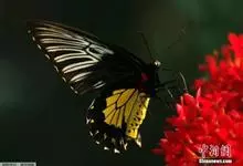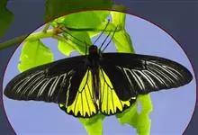 金裳凤蝶是凤蝶科、裳凤蝶属的动物。金裳凤蝶身体呈黑色,头、颈和胸侧有红毛,腹部有黑黄两色相间条纹,雄蝶前翅黑色,具黑天鹅绒光泽,各脉两侧灰白色,后翅金黄色,各室外缘有等腰三角形黑斑1枚,斑内侧有晕,…全部>>