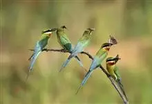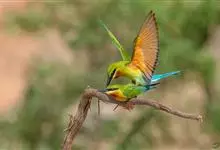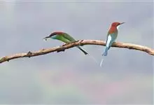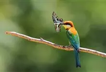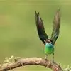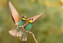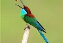 蓝颊蜂虎:是蜂虎科、蜂虎属的鸟类,共有2个亚种。体长27-33厘米,翼展46-49厘米,体重38-50克。嘴形细长而下弯,先端尖,…全部>>