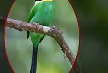 黄喉蜂虎属中型鸟类,体长23-30厘米。喉黄色,其下有一窄的黑色胸带;胸带以下的整个下体蓝绿色。前额蓝白色,具一宽的黑色贯眼纹,头顶至后颈暗栗色,尾蓝绿色,中央尾羽延长,明显突出于其他尾羽。…全部>>