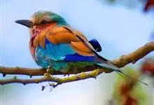 蓝喉蜂是蜂虎科蜂虎属鸟类。体长26-28厘米,嘴长而弯曲,有明显细长的中央尾羽。头部、颈部和背部为巧克力色,有黑色眼纹。喉部、腰部和尾羽为蓝色。腹部和两翼为绿色。幼鸟外观似成鸟,头部、颈部和背部为绿色,…全部>>