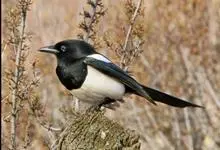 喜鹊:是鸦科、鹊属的一种鸟类。共有11个亚种。体长40-50厘米,雌雄羽色相似,头、颈、背至尾均为黑色,并自前往后分别呈现紫色、绿蓝色、绿色等光泽,双翅黑色而在翼肩有一大形白斑,尾远较翅长,呈楔形,…全部>>