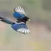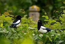 喜鹊:是鸦科、鹊属的一种鸟类。共有11个亚种。体长40-50厘米,雌雄羽色相似,头、颈、背至尾均为黑色,并自前往后分别呈现紫色、绿蓝色、绿色等光泽,双翅黑色而在翼肩有一大形白斑,尾远较翅长,呈楔形,…全部>>