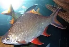 彩虹鲨是鲤形目鲤科野鲮属鱼类,别名红鳍野鲮、红鳍鲨。成鱼体长12厘米,体呈长梭形,侧稍扁。尾鳍呈叉状;背鳍特别宽大,嘴上有两根胡须。鱼体呈浅褐色,各鳍均呈橘红色;雄鱼的臀鳍镶有黑边,…全部>>
