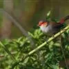 橙颊梅花雀体长约10厘米,头部灰色,两侧有大块橙色区域,嘴基及眼下方有黑纹,两条黑纹间呈白色,颊部有橙红色块斑,喙为红色至橙红色,背部及翼为褐色,腰为鲜红色,身体腹面淡灰色,腹部白色至皮黄色,…全部>>