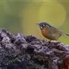 黄喉雀鹛是雀眉科、拟希鹛属小型鸟类,体长11-12厘米。头顶浅黄色具黑色鳞状斑,头顶两侧各有一道黑色侧冠纹,眉纹浅黄色、长而宽阔。上体灰绿色,两翅和尾褐色而具浅黄色窄缘。下体淡黄色。特征明显,…全部>>