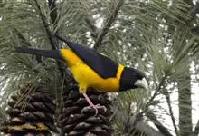 黄颈拟蜡嘴雀:小型鸟类,体长20-22厘米。嘴粗大,黑色。雄鸟整个头、颈、颏、喉和上胸辉黑色,两翅和尾亦为黑色,其余上体橙黄色,下体鲜黄色。雌鸟头、颈、颏、喉和上胸中央灰色或暗灰色,…全部>>
