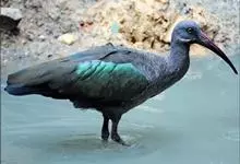 黑鹮:是鹳形目鹮科动物。体长600-680毫米,是一种大型涉禽。特征为头裸出,皮肤黑;体羽几乎全为深褐色,内侧小覆羽白,肩部具白色斑块,腿红色,颈背具浅蓝色斑块。通体体羽深褐,…全部>>