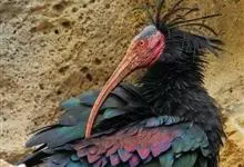 隐鹮是栖息在荒芜、半沙漠或岩石环境的一种朱鹭。体长70-80厘米,身体呈光泽黑色,红色的面部及头部没有羽毛,喙长而弯。隐鹮不像其他朱鹭般在水上生活,主要吃蜥蜴、昆虫及其他细小的动物,它们在岸边或山崖…全部>>