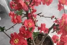 贴梗海棠Nakai)是蔷薇科、木瓜海棠属植物。落叶灌木,高达2米,枝条直立开展,有刺。叶片卵形至椭圆形,稀长椭圆形,长3-9厘米,宽1.5-5厘米。花先叶开放,3-5朵簇生于二年生老枝上。…全部>>