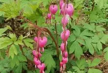 荷包牡丹 Fukuhara),是罂粟科荷包牡丹属的多年生草本植物,株高30-60厘米,具肉质根状茎;茎直立呈圆柱形;叶二回三出全裂,状似牡丹叶;总状花序顶生,基部为心形,花瓣紫红色至粉红色,稀白色,…全部>>