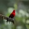 酒红朱雀小型鸟类,体长13~15厘米。雄鸟通体深红色,头部深朱红或棕红色,下背和腰玫瑰红色,眉纹粉红色而具丝绢光泽。两翅和尾黑褐或灰褐色、具暗红色狭缘,内侧两枚三级飞羽具淡粉红色先端。…全部>>