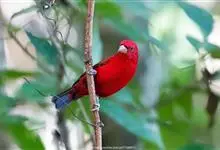 血雀雀科朱雀属鸟类,体重36-49克;体长155-182毫米。雄鸟除眼先、翼与尾为黑色外,通体为鲜红色;嘴鲜黄;雌鸟暗橄榄绿色,羽端较淡或带黄色;腰鲜黄;嘴较暗。虹膜褐色;嘴黄色;腿和脚褐色。…全部>>
