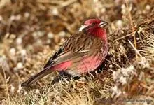 喜马拉雅白眉朱雀:小型鸟类,体长15-17厘米,体重24-35克。额基、眼先深红色,前额和一条长而宽阔的眉纹珠白色沾有粉红色并具丝娟光泽,在暗色的头部极为醒目。头顶至背棕褐或红褐色、具黑褐色羽干纹,…全部>>