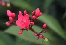 变叶珊瑚花,是大戟科麻风树属常绿灌木。变叶珊瑚花单叶互生,倒阔披针形,叶面为浓绿色,叶背为紫绿色,叶柄具茸毛,叶面平滑,常丛生于枝条顶端;花单性,雌雄同株,花冠红色或粉红色,雌、雄花不同时开放;具乳汁,…全部>>