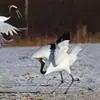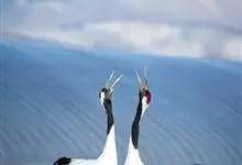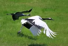 丹顶鹤:是鹤科、鹤属的一种大型涉禽,体长120-160厘米。颈、脚较长,通体大多白色,头顶鲜红色,喉和颈黑色,耳至头枕白色,脚黑色,站立时颈、尾部飞羽和脚黑色,头顶红色,…全部>>