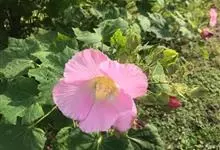 芙蓉葵是锦葵科木槿属植物,又名草芙蓉、大花秋葵,原产于北美。落叶灌木状。叶大、广卵形,叶柄、叶背密生灰色星状毛。花大,单生于叶腋,有白、粉、红、紫等色。喜阳、略耐阴,宜温暖湿润气候,忌干旱,耐水湿,…全部>>