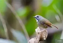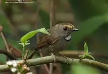 白喉姬鹟:体长11-13厘米,是一种体型小的橄榄褐色鹟。特征为颏及喉白色且成胸兜,缘以黑色的髭纹及项纹。上体红褐色,前额和一相连的短的眉纹白色,眼先、耳覆羽和头侧灰褐色而杂白色,颏、喉白色,…全部>>