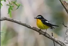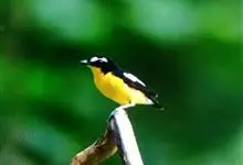 白眉姬鹟是小型鸟类,体长11-14厘米。雄鸟上体大部黑色,眉纹白色,在黑色的头上极为醒目。腰鲜黄色,两翅和尾黑色,翅上具白斑。下体鲜黄色。雌鸟上体大部橄榄绿色。腰鲜黄色,翅上亦具白斑。下体淡黄绿色。…全部>>