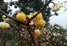 结香是瑞香科结香属落叶灌木。又名岩泽兰、三桠皮、三叉树、蒙花、山棉皮等。高约0.7-1.5米,小枝粗壮,褐色,常作三叉分枝,幼枝常被短柔毛;叶在花前凋落,长圆形,披针形至倒披针形,先端短尖,…全部>>