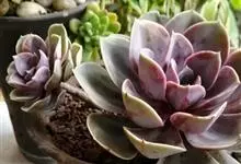 紫珍珠是景天科石莲花属的多年生肉质草本植物。植株中小型;叶片肉质,匙形,呈莲座状紧密排列;叶片粉紫色,叶缘呈粉白色,光照充足时颜色亮丽,不足时叶色会呈现深绿色或灰绿色,叶面光滑,被轻微白粉,…全部>>