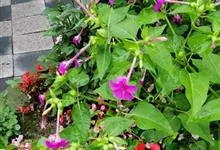 即紫茉莉,英文名:Four-o'clock,Marvel of Peru,为紫茉莉科、紫茉莉属多年生草本植物,一年生栽培。株高50~80cm。根粗壮,茎多分枝而散生。叶对生,卵形或心脏形。花数朵簇生…全部>>