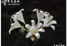 石蒜 Herb.):鳞茎近球形。秋季出叶,叶狭带状,顶端钝,深绿色,中间有粉绿色带;花茎高约30厘米;总苞片2枚,披针形;长约35厘米,宽约05厘米;伞形花序有花4-7朵;花鲜红色;花被裂片狭倒披针…全部>>