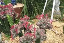 彩春峰是大戟科大戟属肉质植物,彩春峰的肉质茎依品种的不同有暗红色、乳白、淡黄及镶边、斑纹等复色。彩春峰的性状很不稳定,栽培中经常会发生色彩的变异,如暗紫红色肉质茎会长出白色黄色斑块等。…全部>>